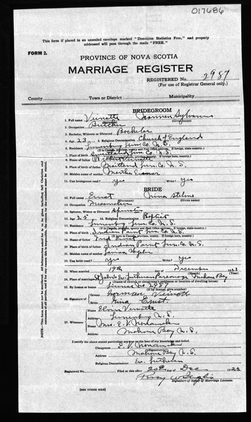 Registration: Year: 1923 number: 17686