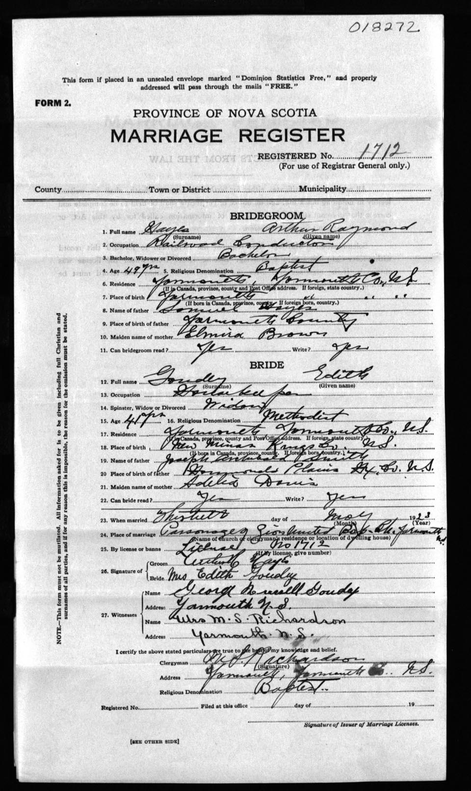 Registration: Year: 1923 number: 18272