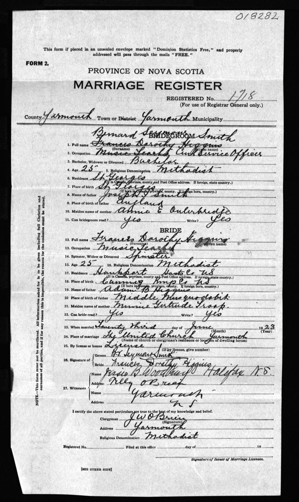 Registration: Year: 1923 number: 18282