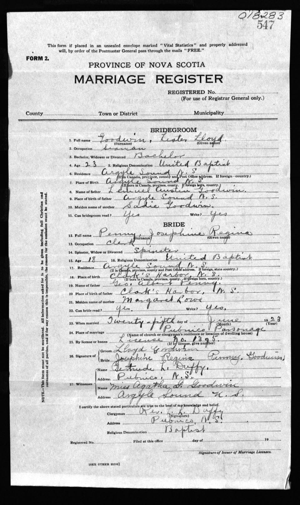 Registration: Year: 1923 number: 18283
