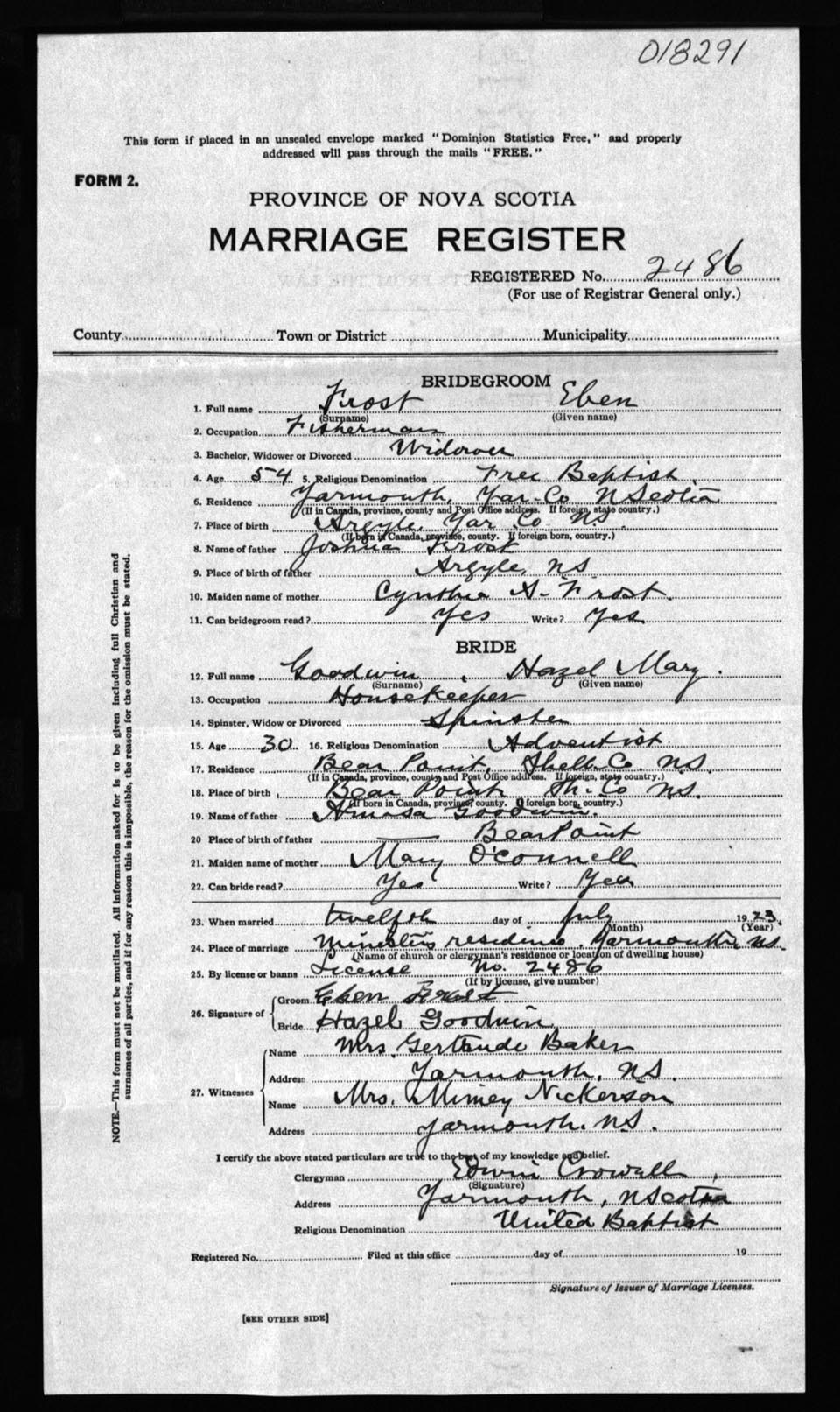 Registration: Year: 1923 number: 18291