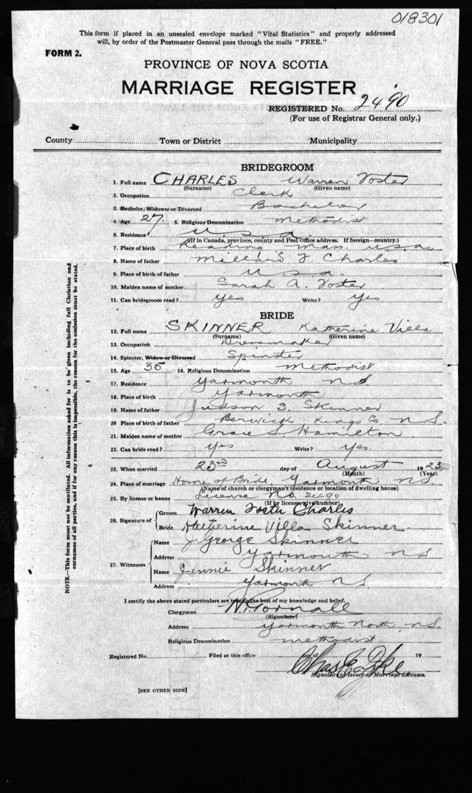 Registration: Year: 1923 number: 18301