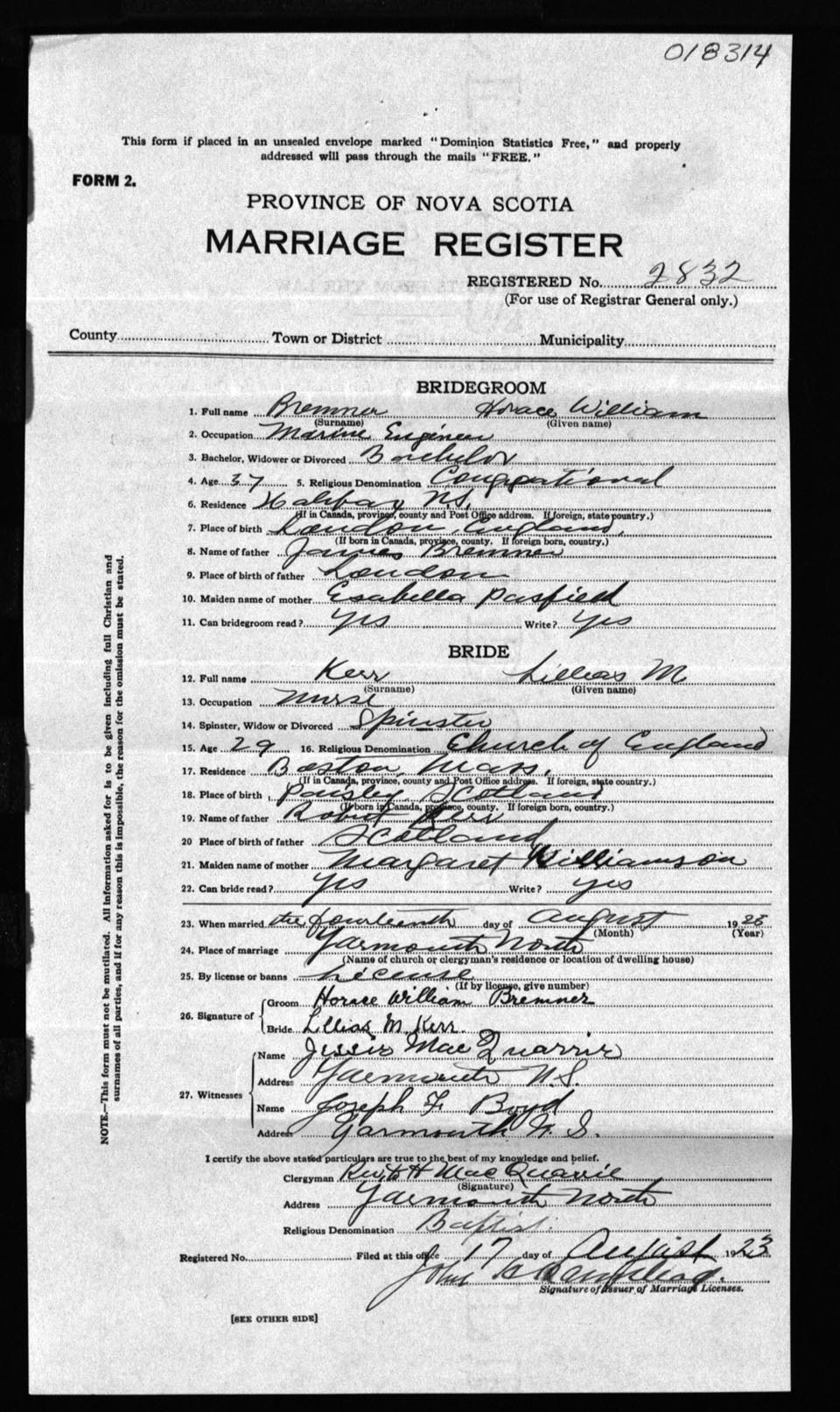 Registration: Year: 1923 number: 18314