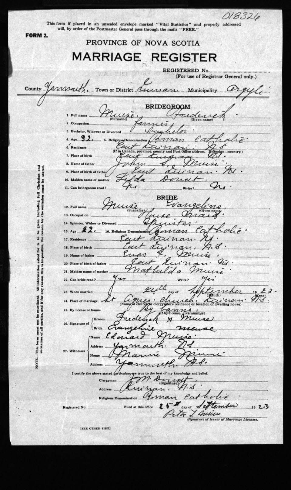 Registration: Year: 1923 number: 18326