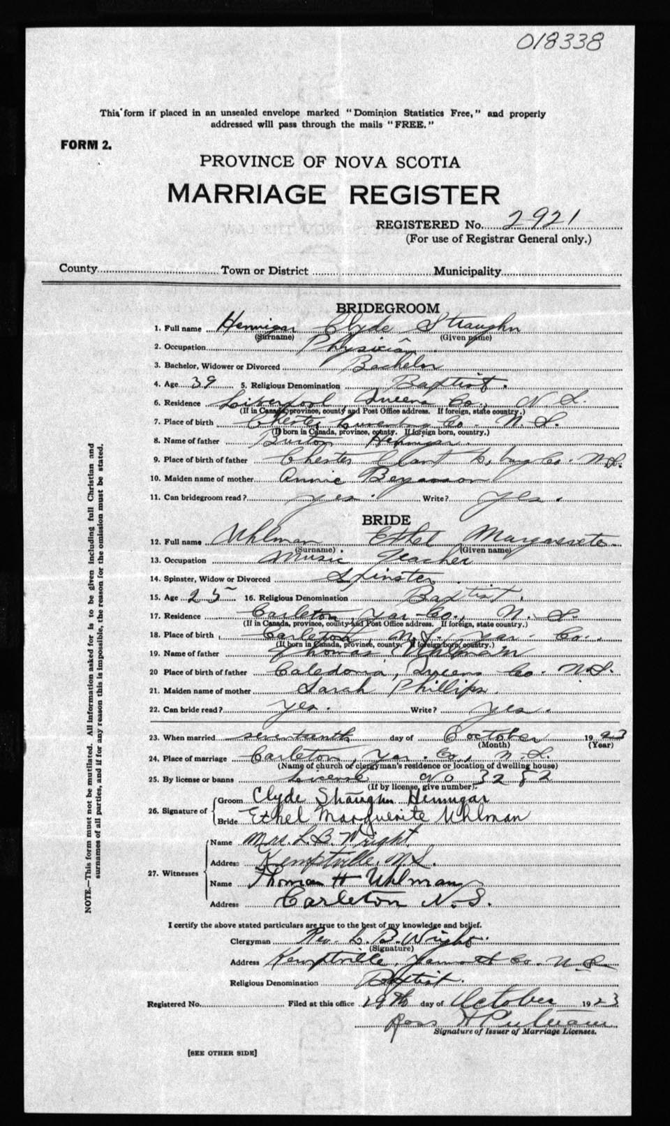 Registration: Year: 1923 number: 18338