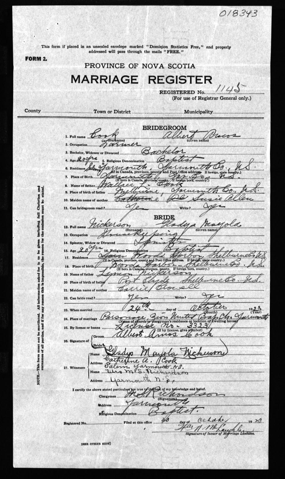 Registration: Year: 1923 number: 18343