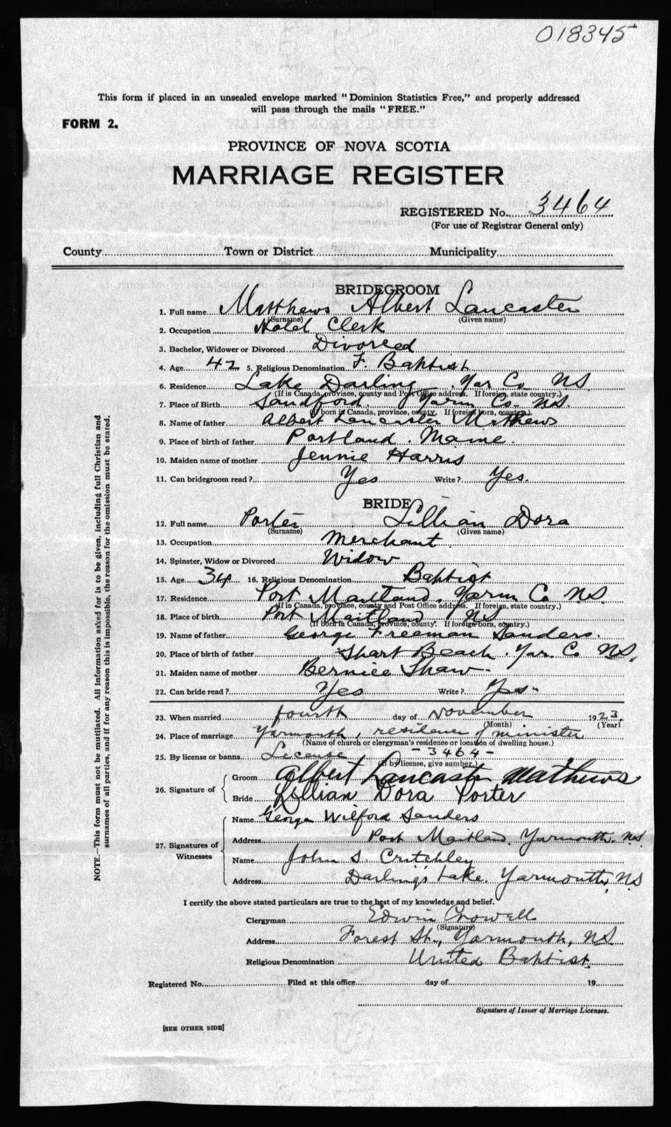 Registration: Year: 1923 number: 18345