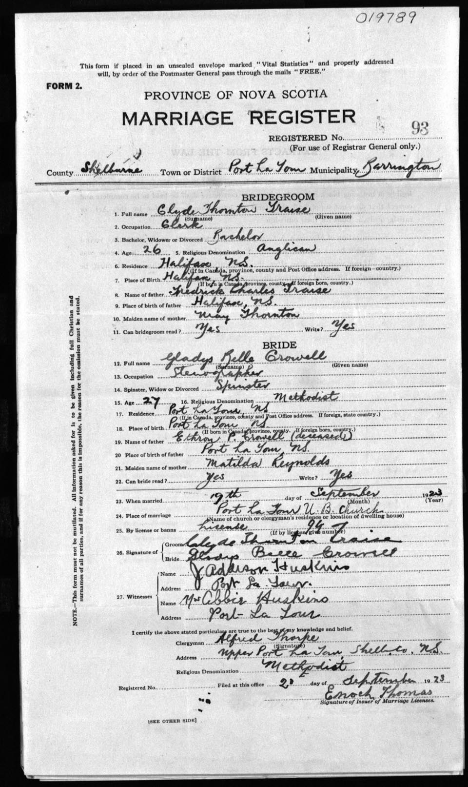 Registration: Year: 1923 number: 19789