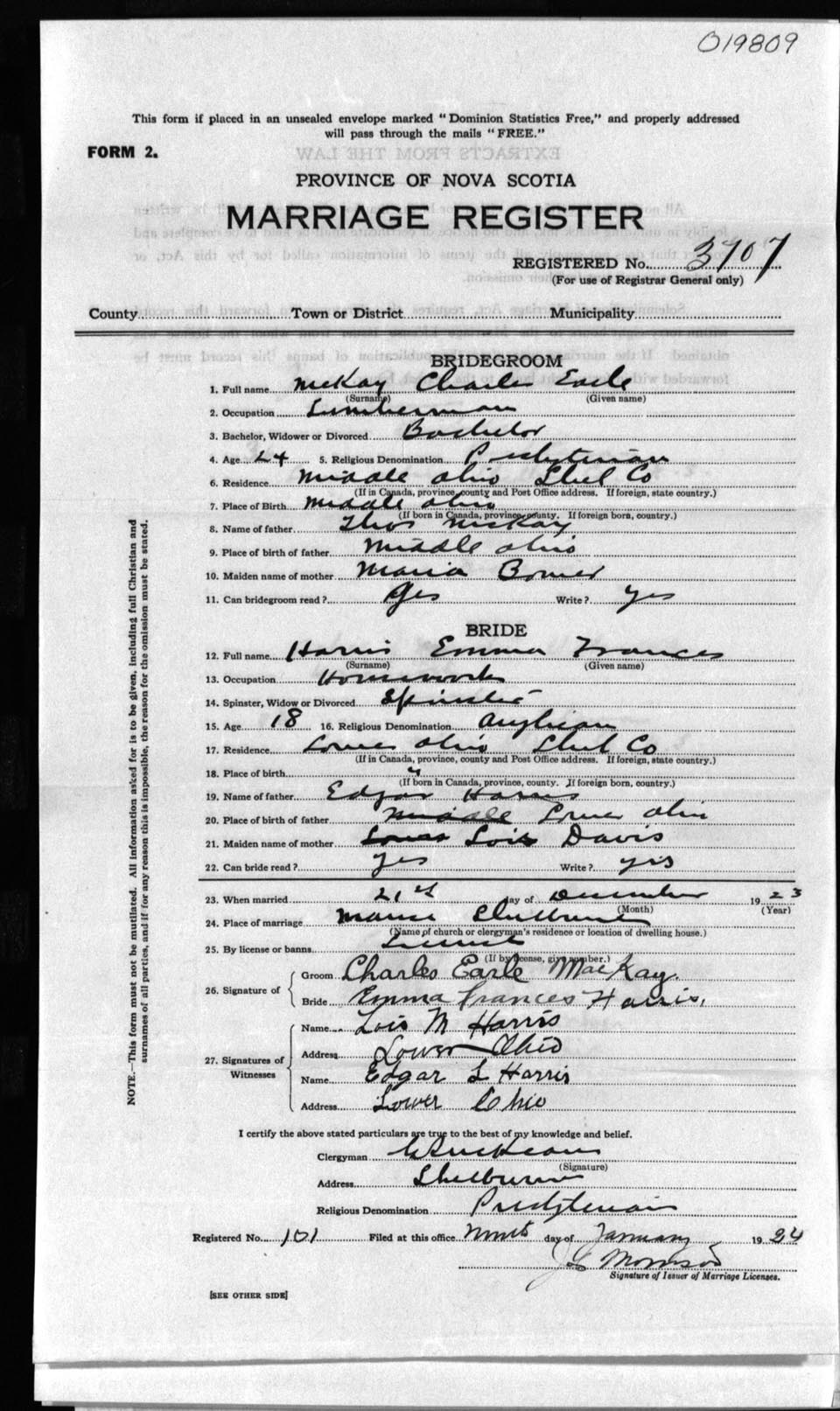 Registration: Year: 1923 number: 19809