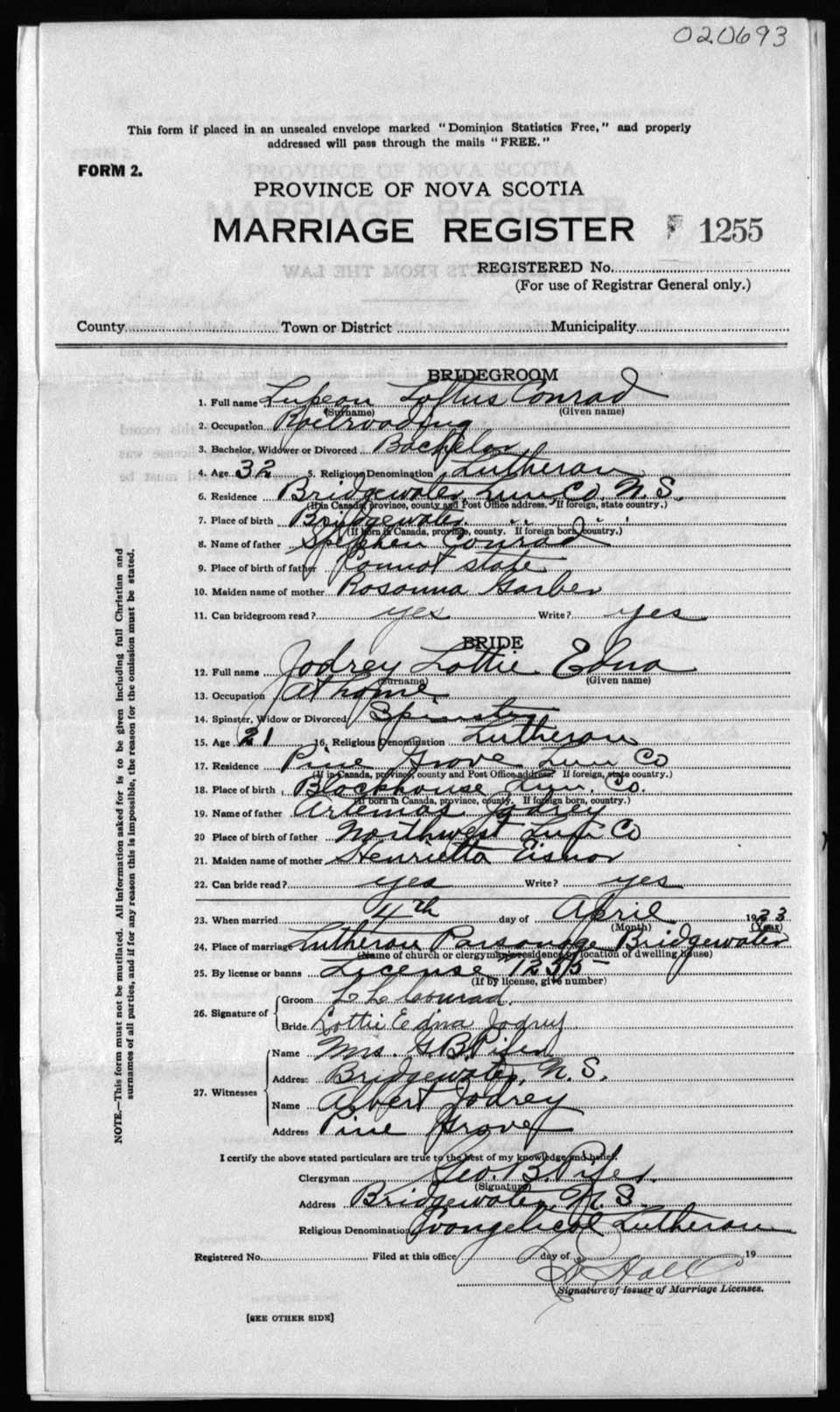 Registration: Year: 1923 number: 20693
