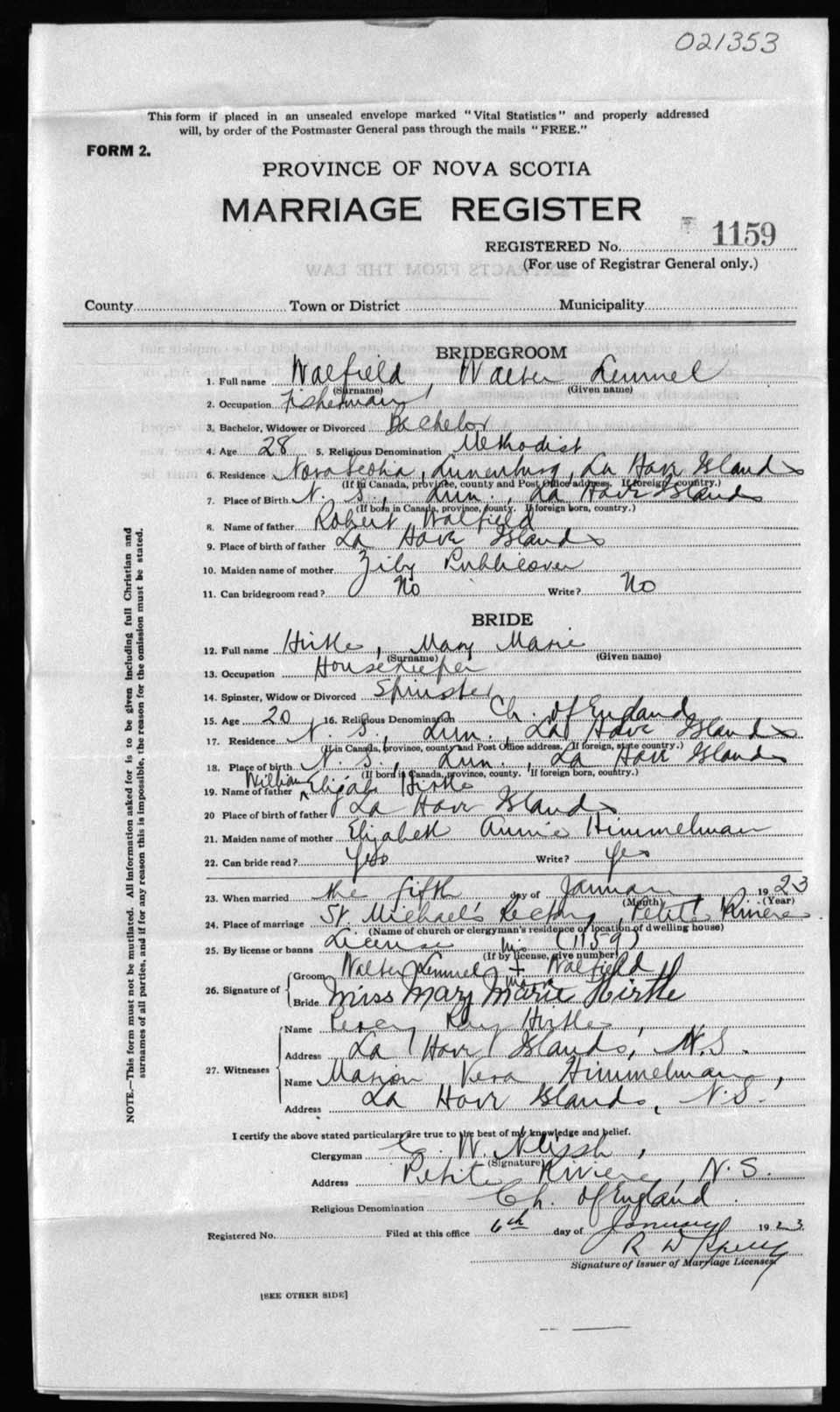 Registration: Year: 1923 number: 21353
