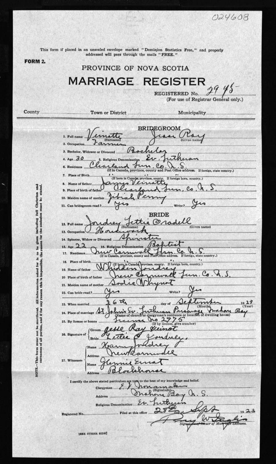 Registration: Year: 1923 number: 24608