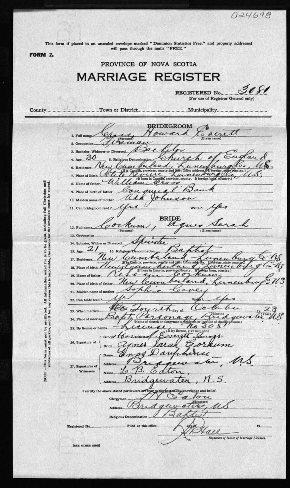 Registration: Year: 1923 number: 24698