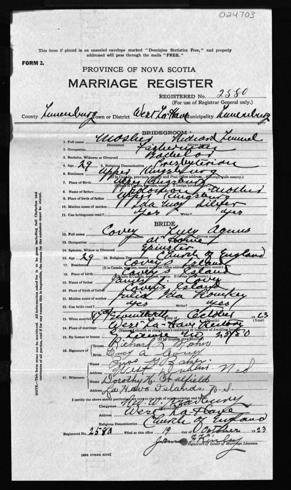 Registration: Year: 1923 number: 24703