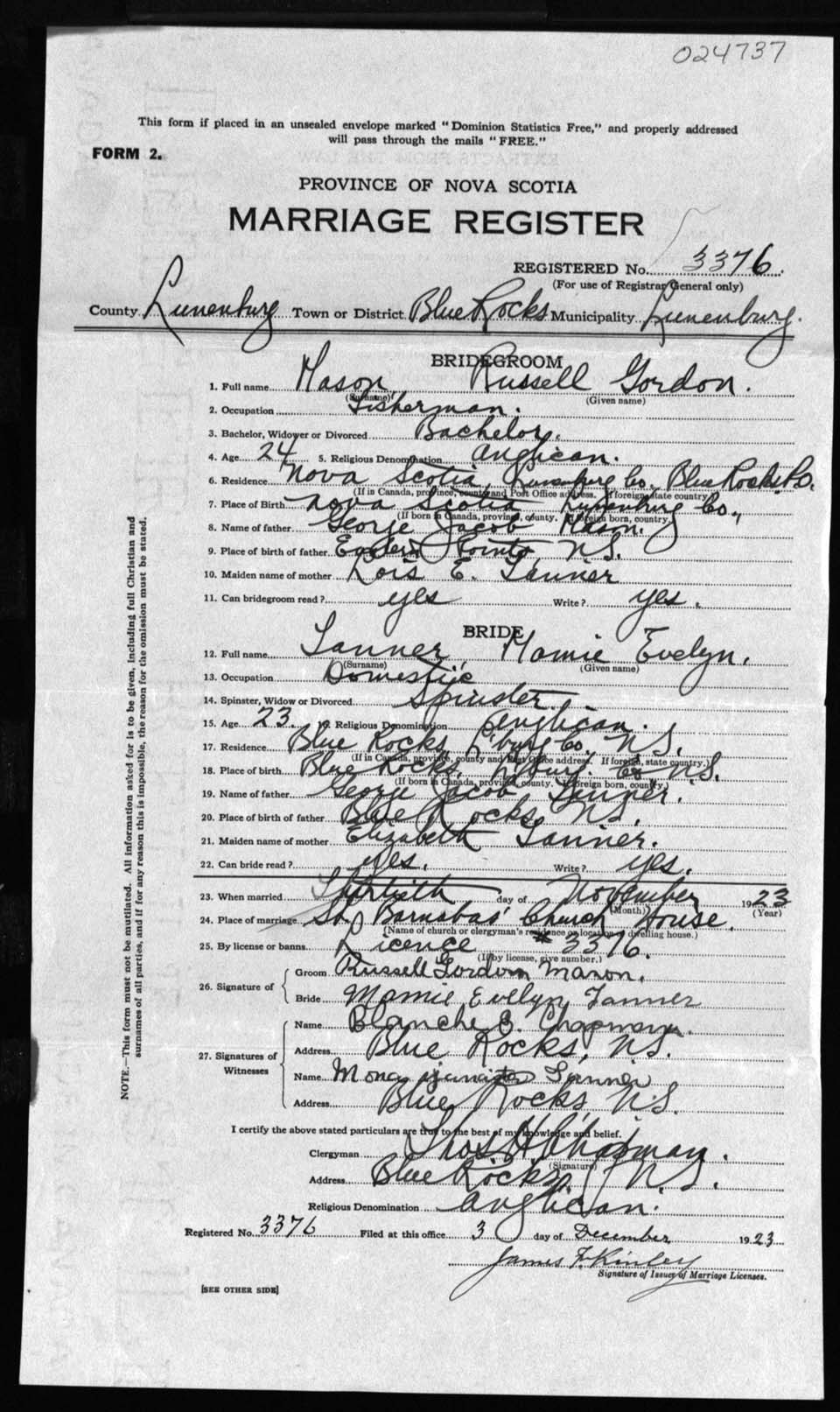 Registration: Year: 1923 number: 24737