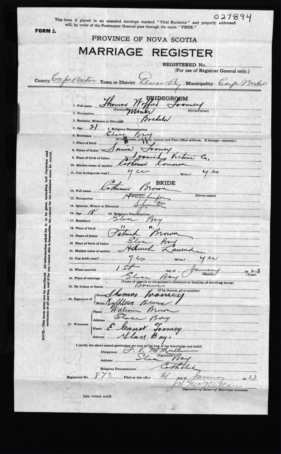 Registration: Year: 1923 number: 27894