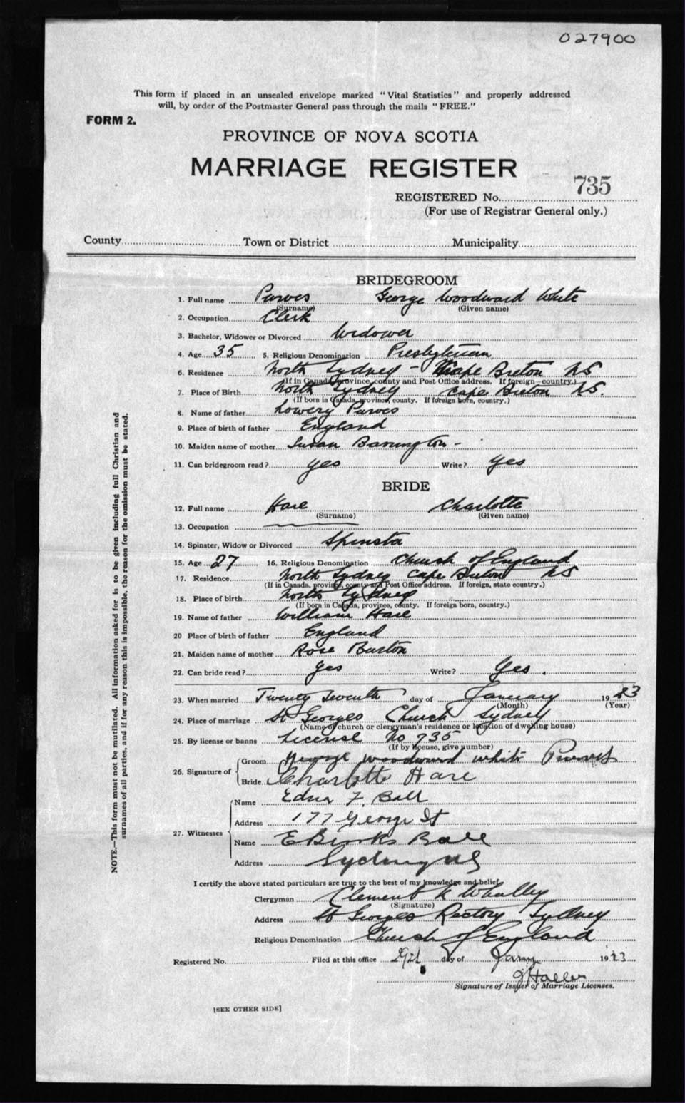 Registration: Year: 1923 number: 27900