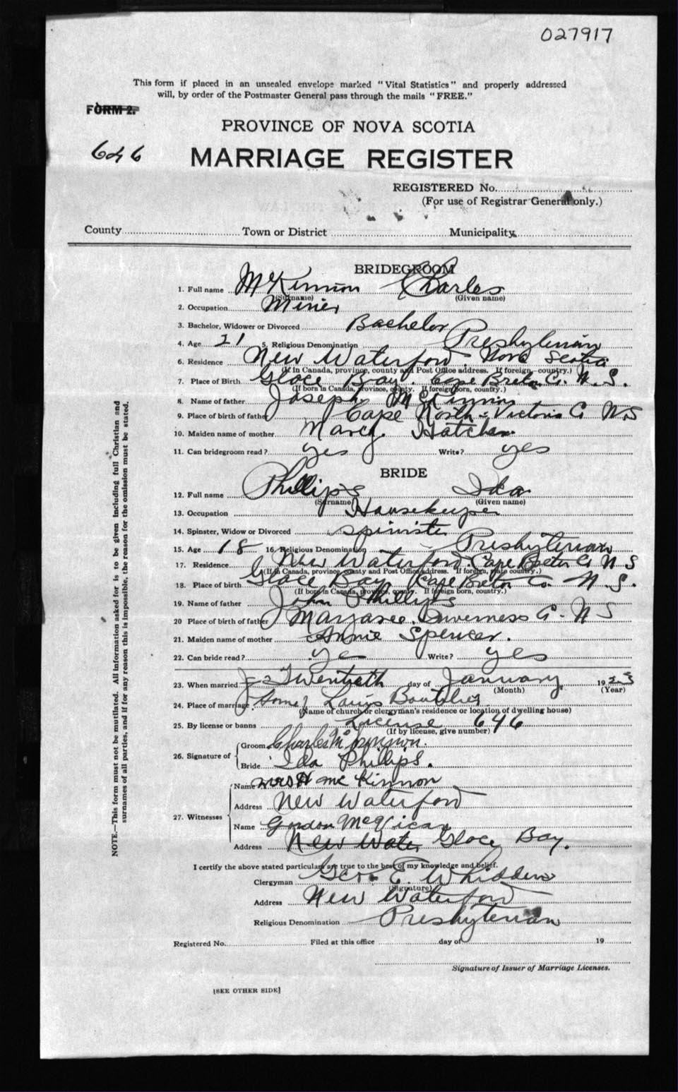 Registration: Year: 1923 number: 27917