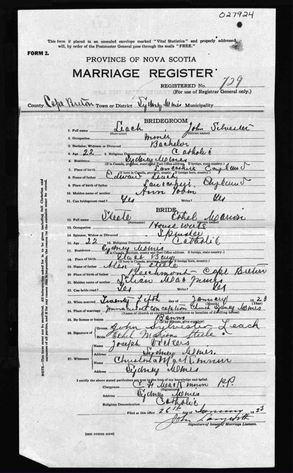 Registration: Year: 1923 number: 27924