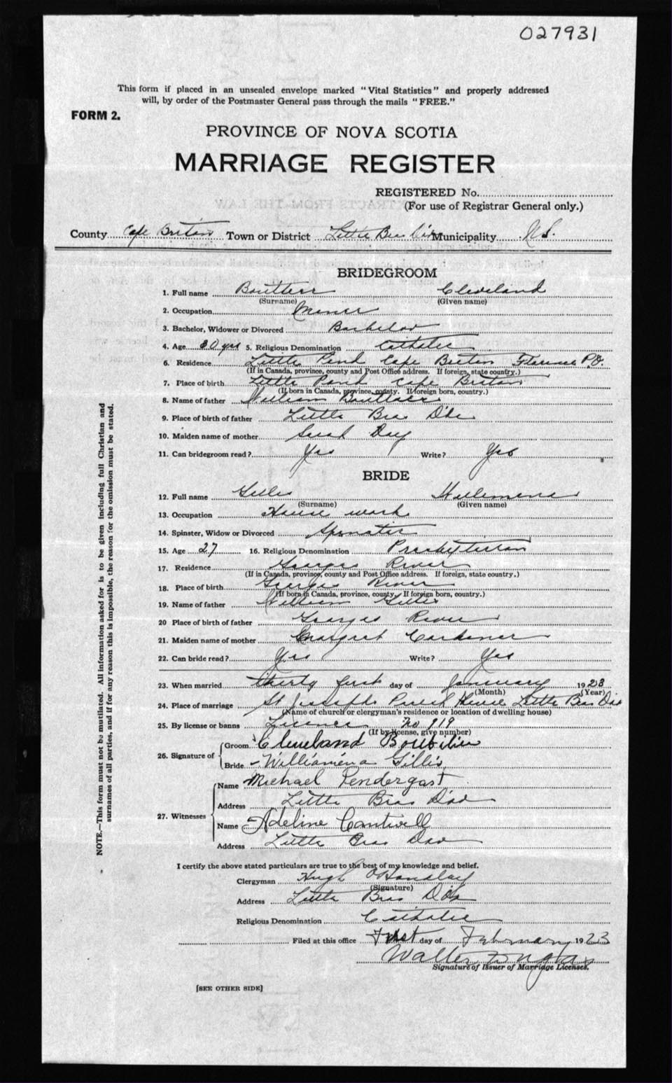 Registration: Year: 1923 number: 27931