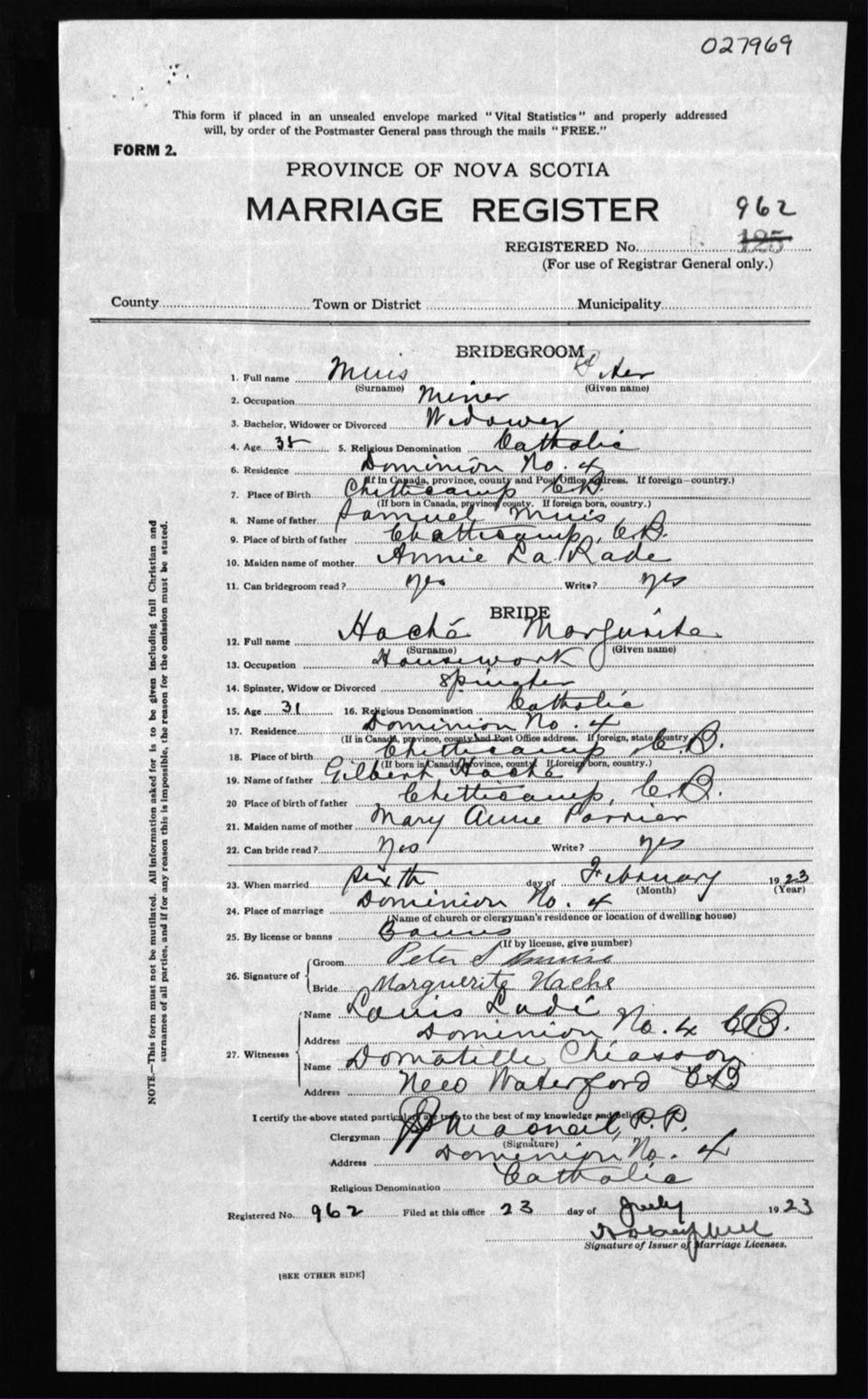 Registration: Year: 1923 number: 27969