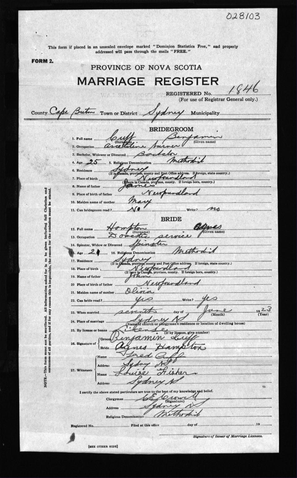 Registration: Year: 1923 number: 28103