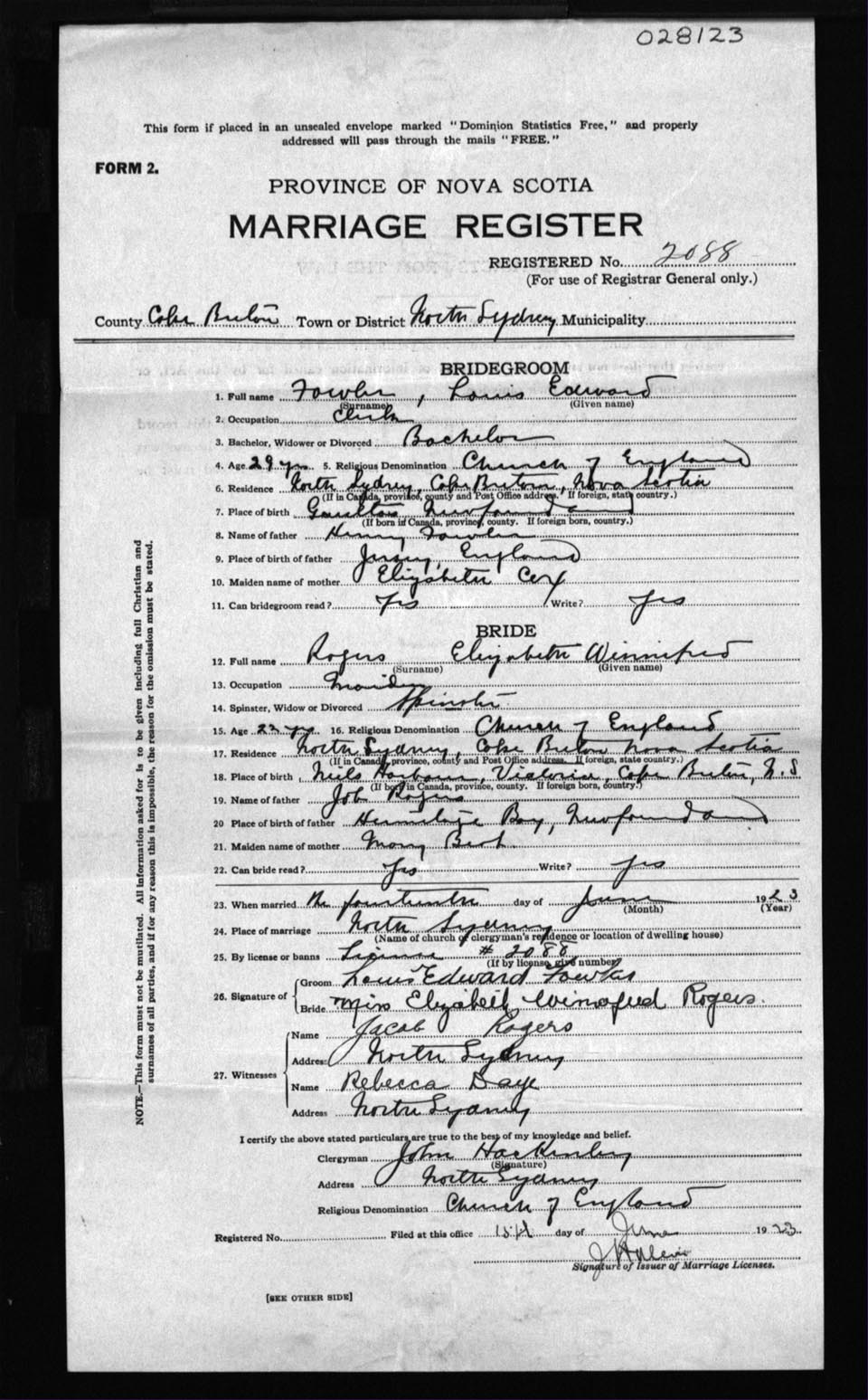 Registration: Year: 1923 number: 28123