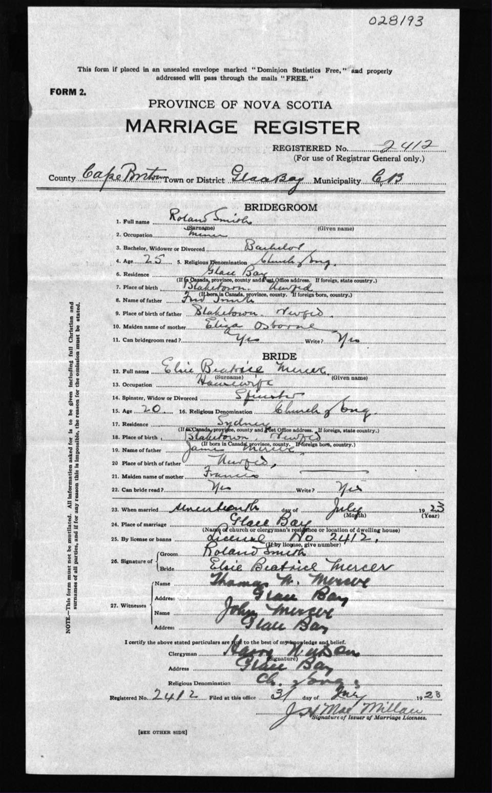 Registration: Year: 1923 number: 28193