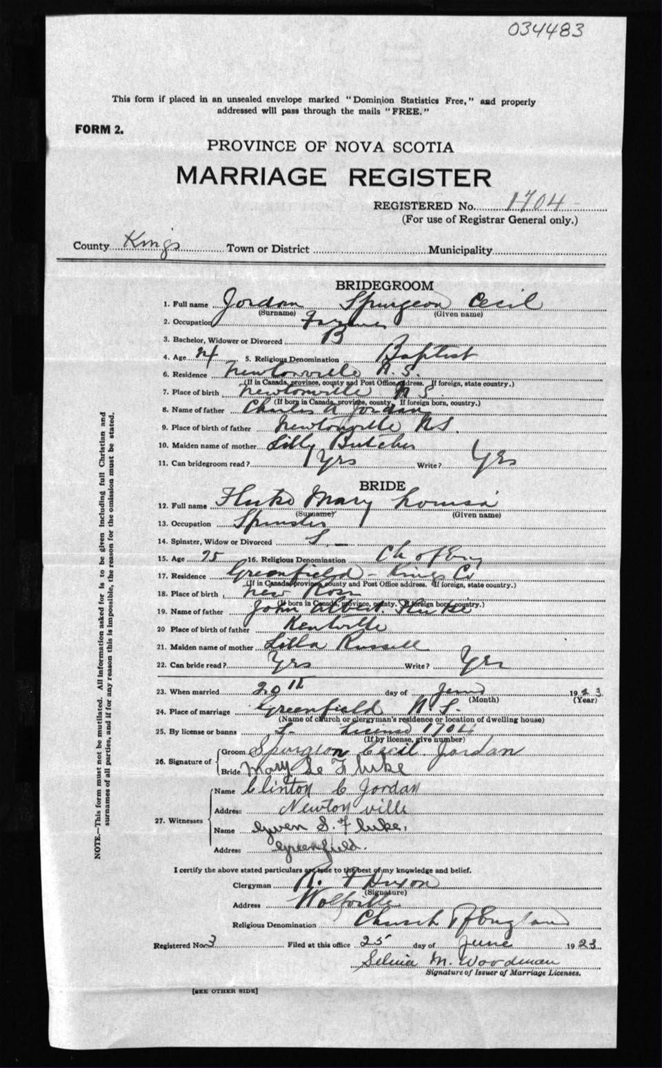 Registration: Year: 1923 number: 34483