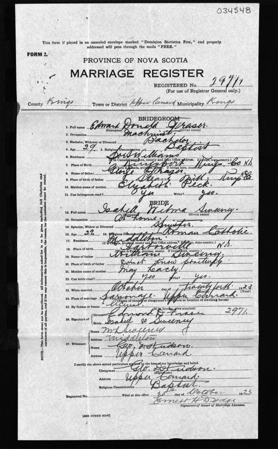 Registration: Year: 1923 number: 34548