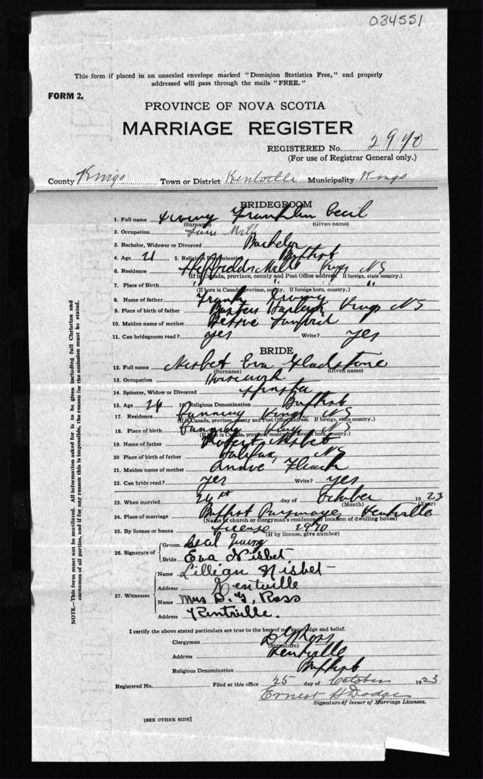 Registration: Year: 1923 number: 34551