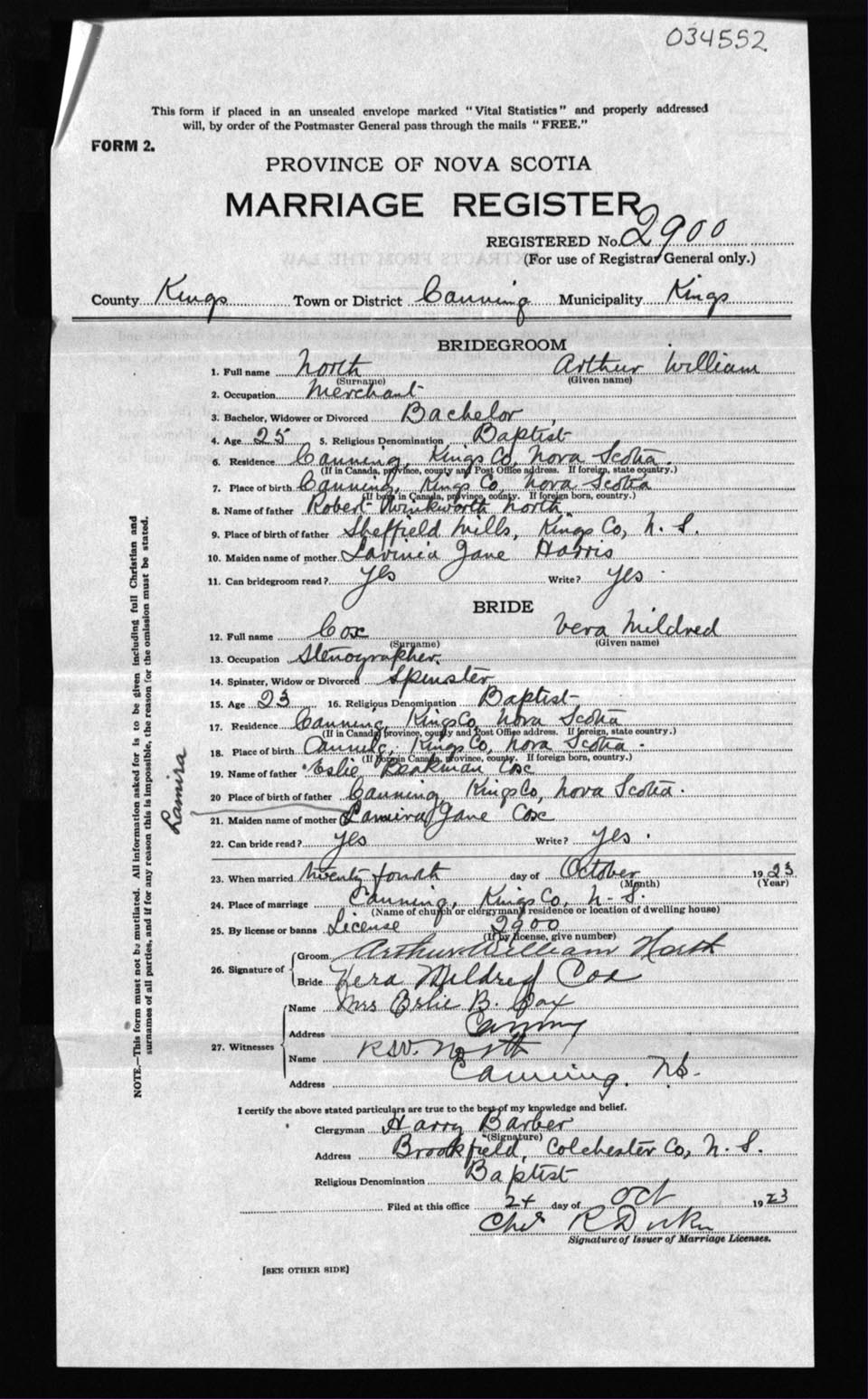 Registration: Year: 1923 number: 34552