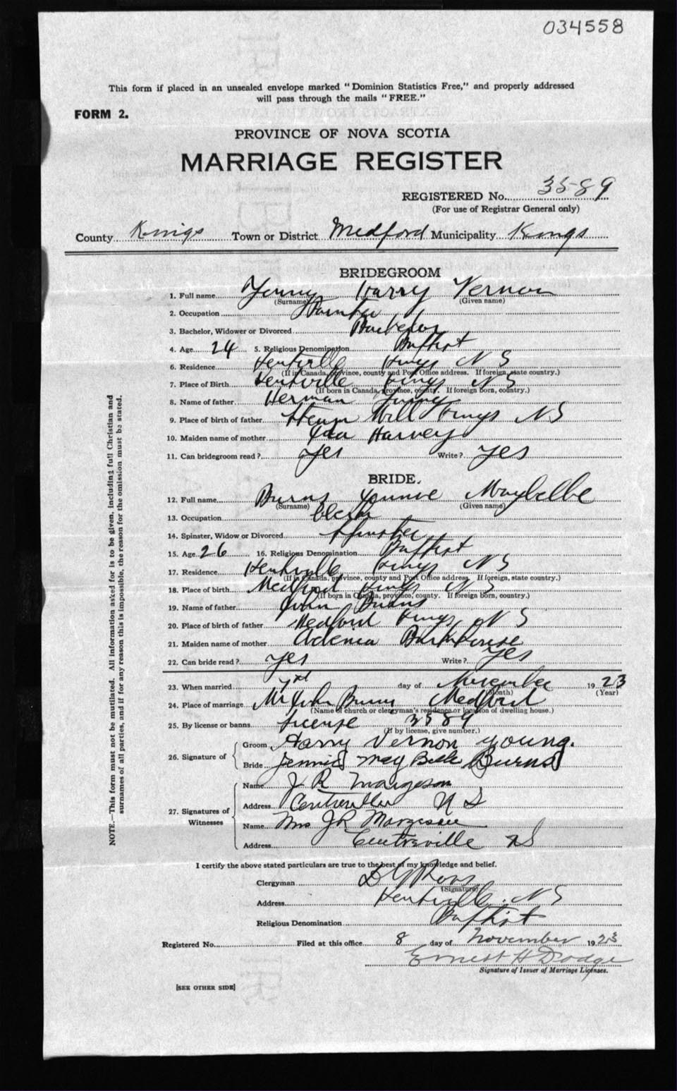 Registration: Year: 1923 number: 34558