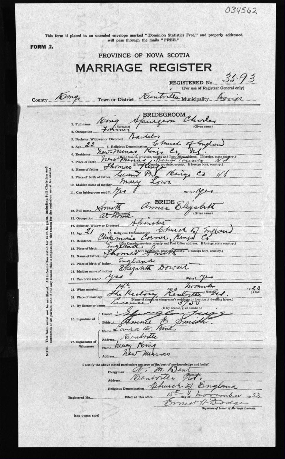 Registration: Year: 1923 number: 34562