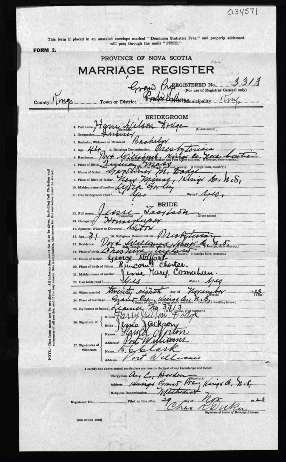 Registration: Year: 1923 number: 34571