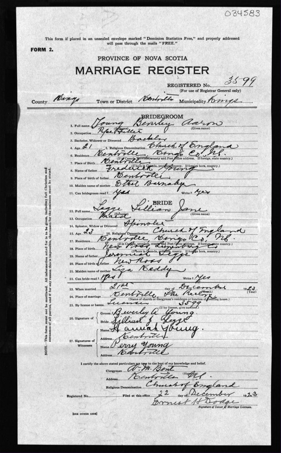 Registration: Year: 1923 number: 34583