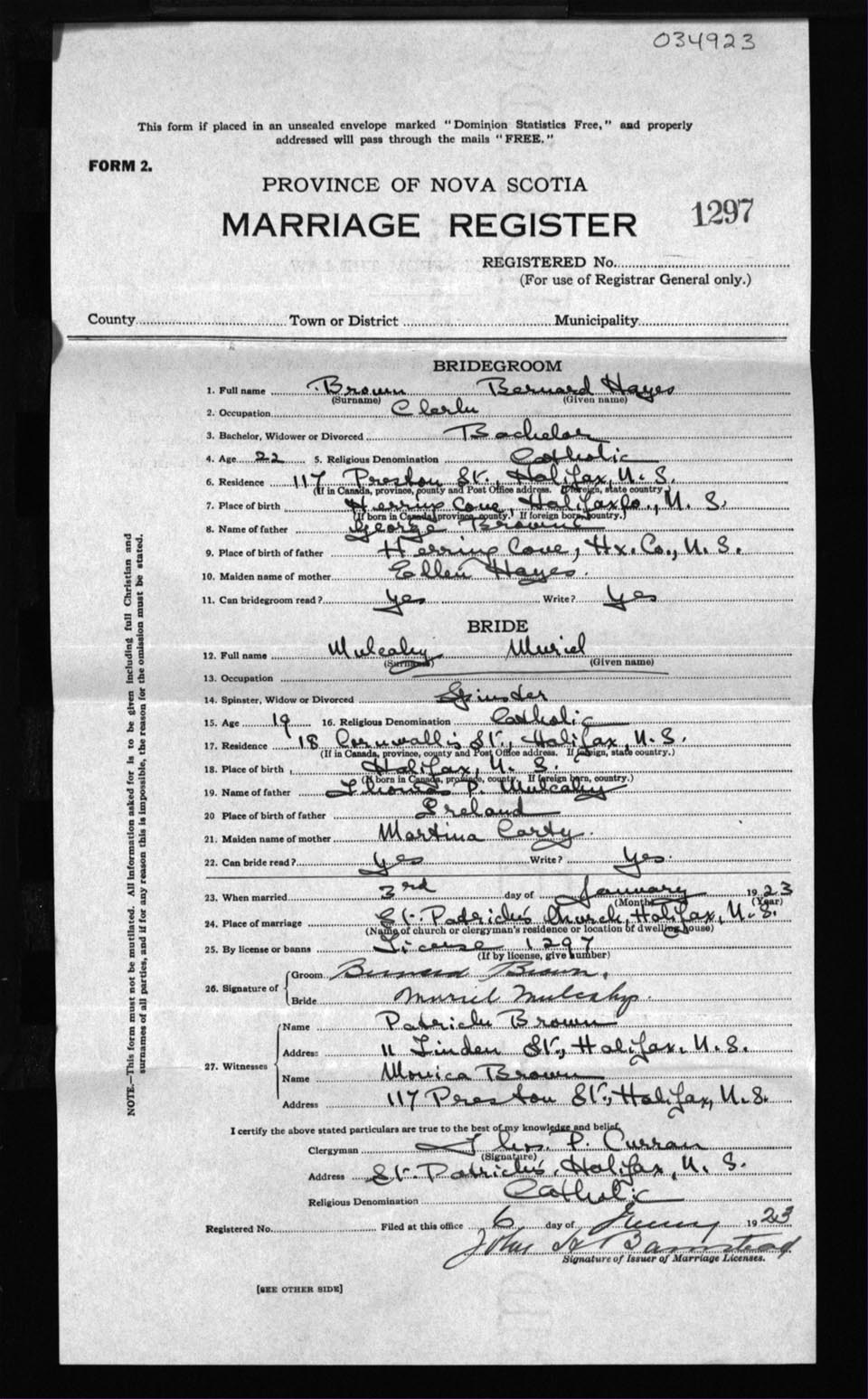 Registration: Year: 1923 number: 34923