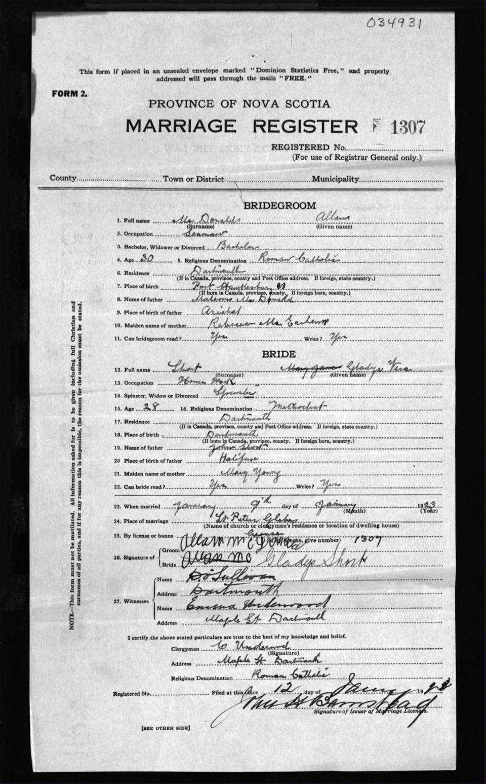 Registration: Year: 1923 number: 34931