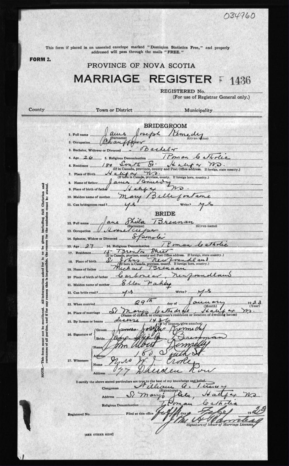 Registration: Year: 1923 number: 34960