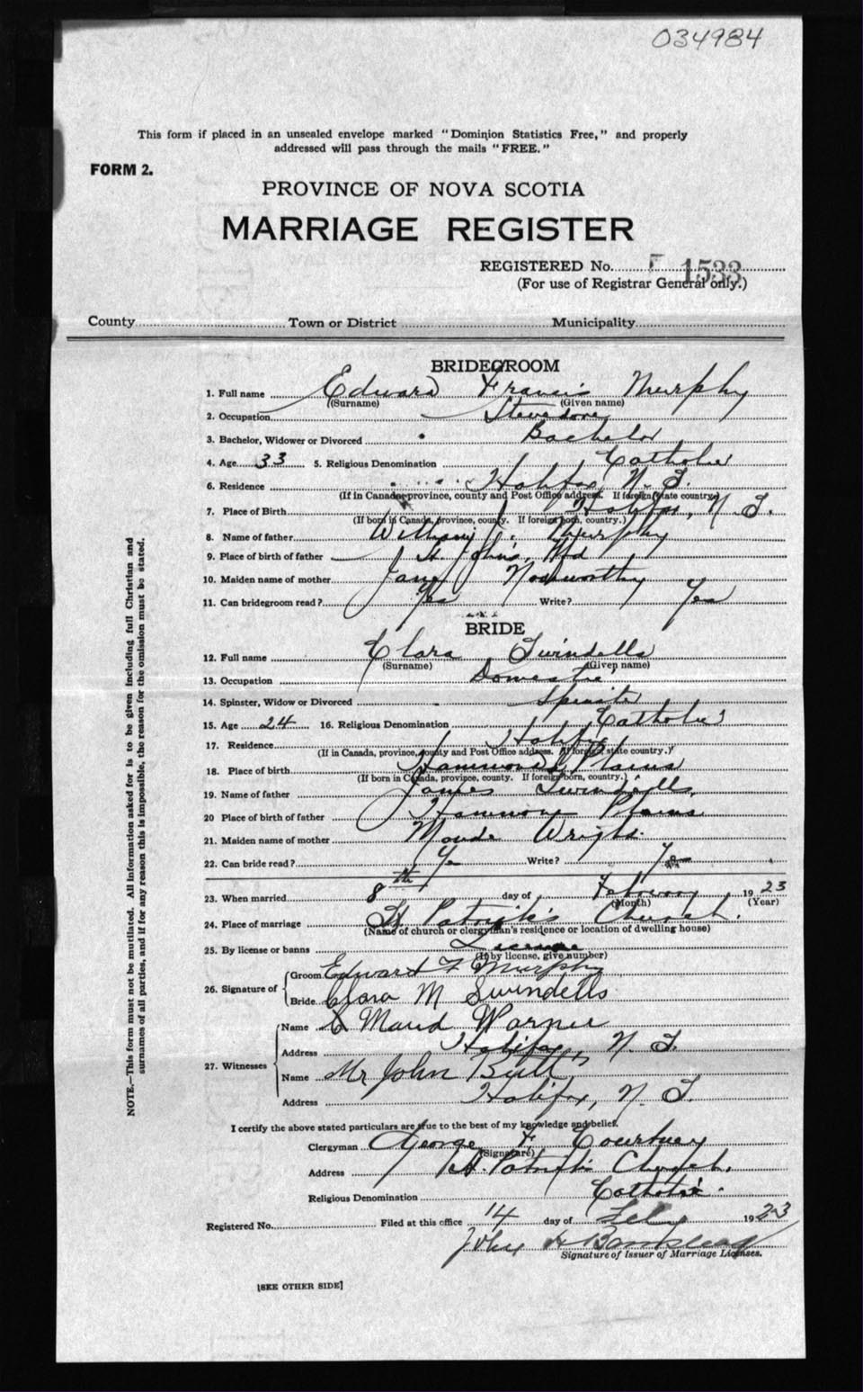 Registration: Year: 1923 number: 34984