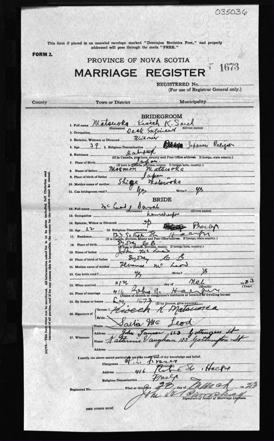 Registration: Year: 1923 number: 3536