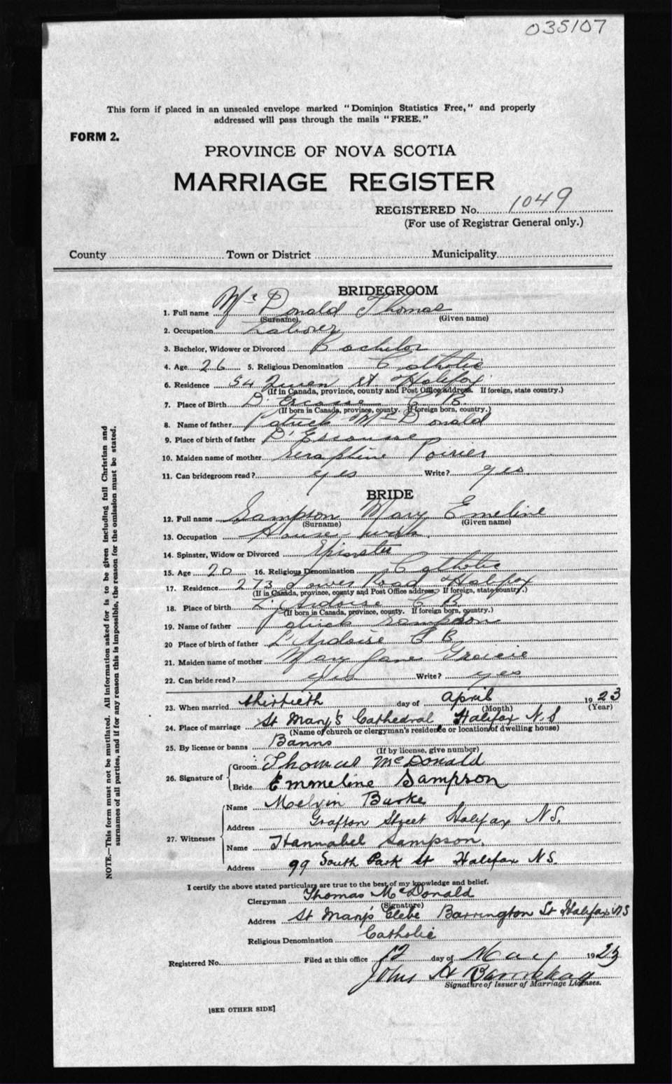 Registration: Year: 1923 number: 35107