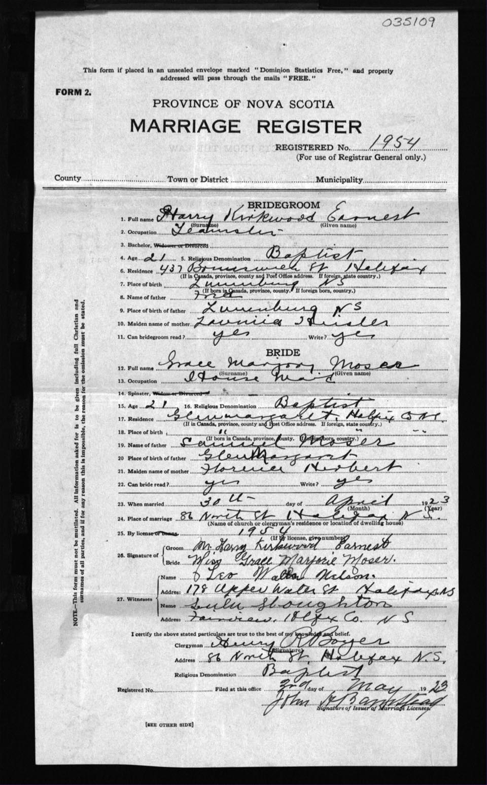 Registration: Year: 1923 number: 35109
