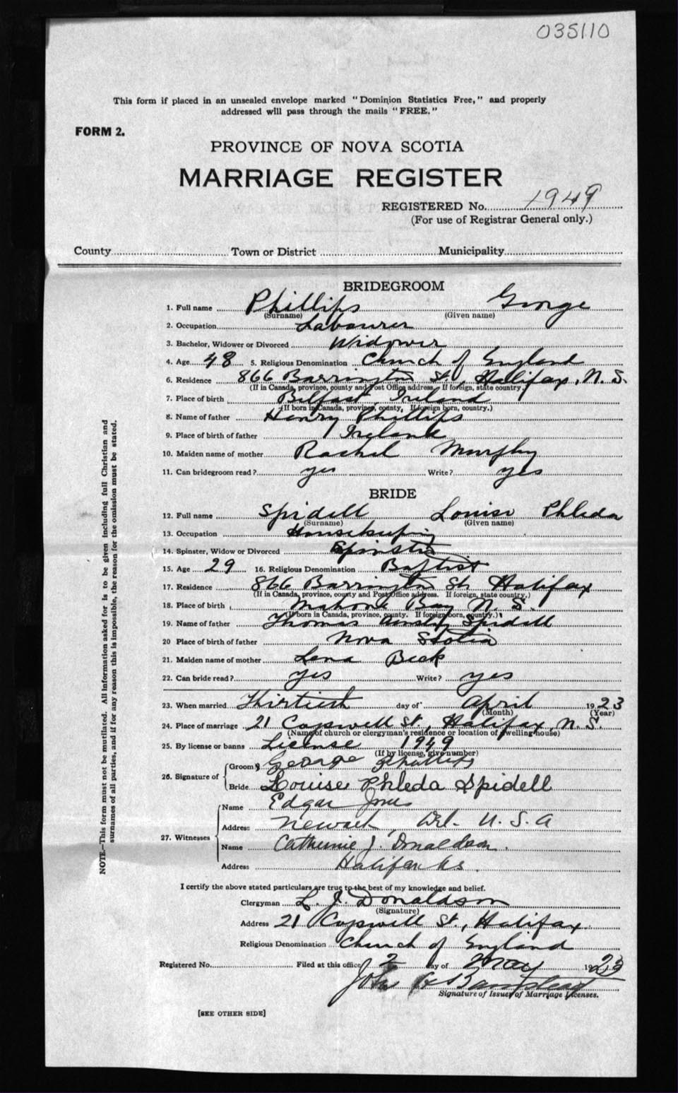 Registration: Year: 1923 number: 35110