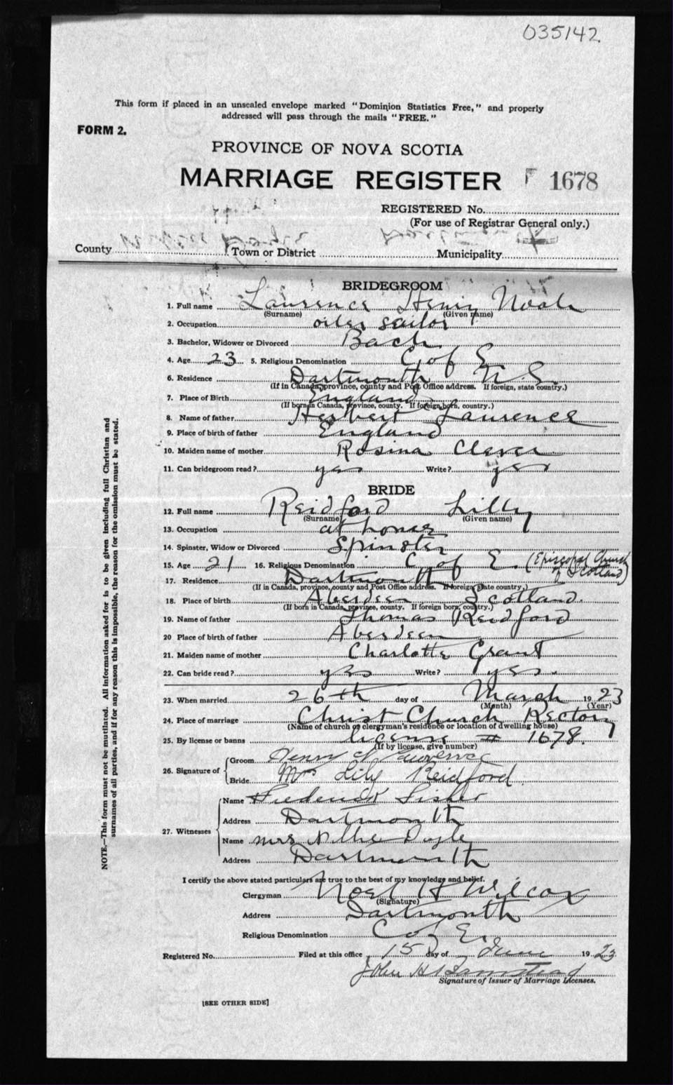 Registration: Year: 1923 number: 35142
