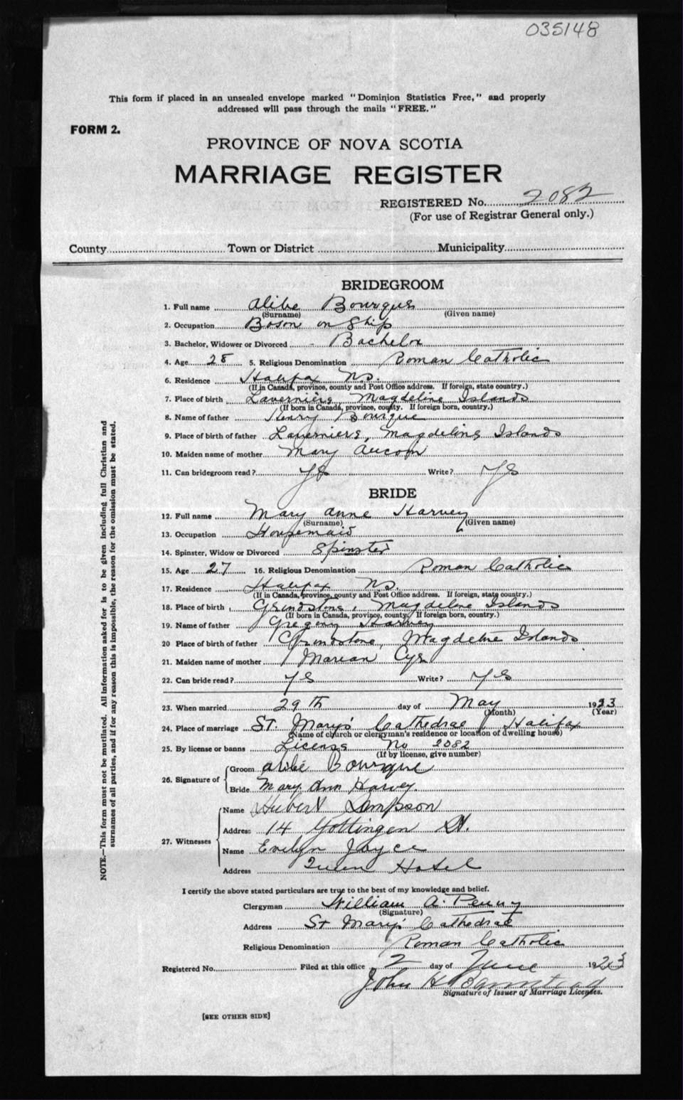 Registration: Year: 1923 number: 35148