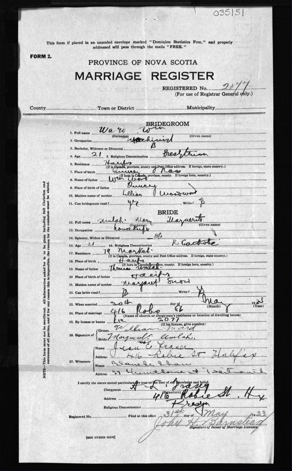 Registration: Year: 1923 number: 35151
