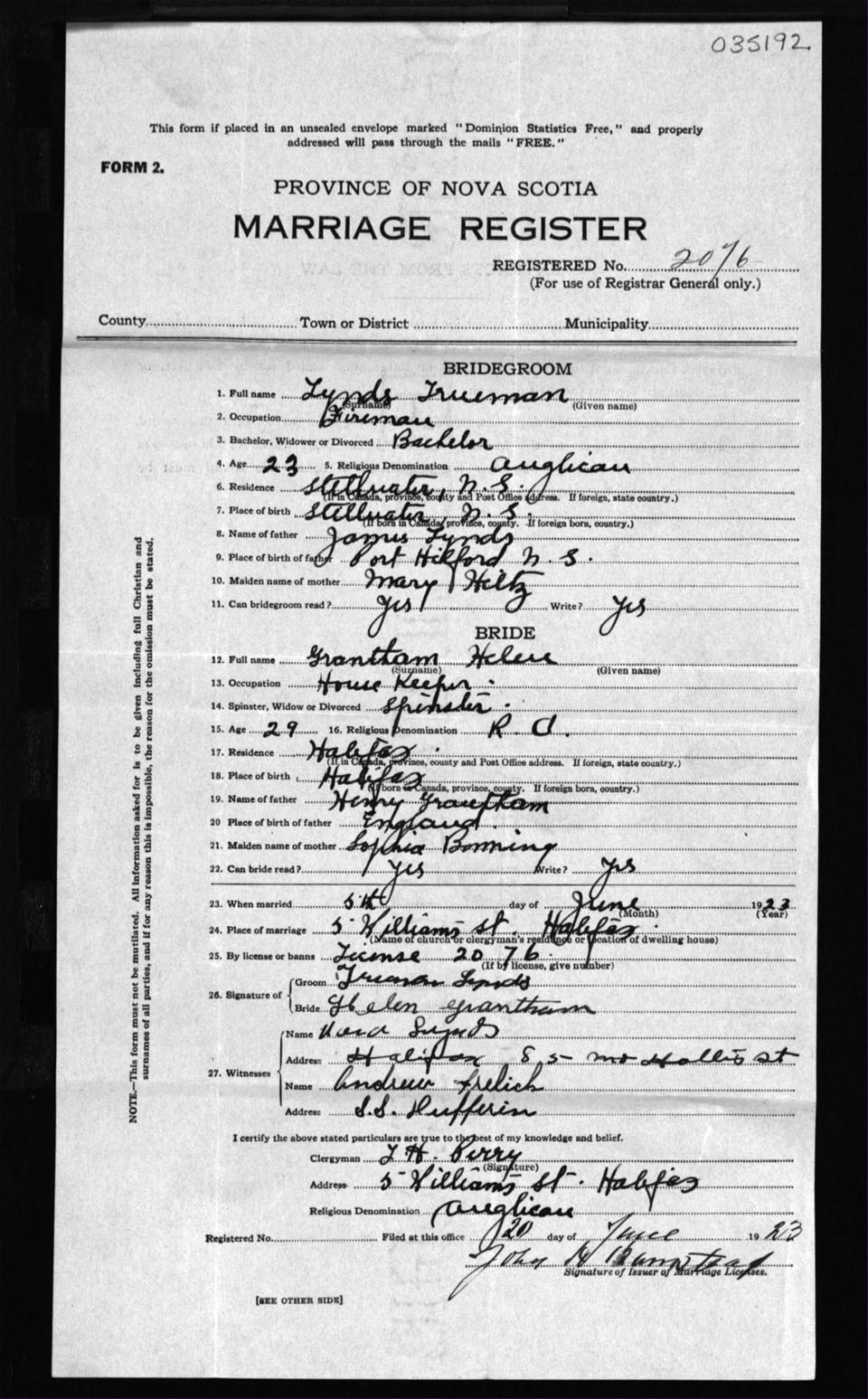 Registration: Year: 1923 number: 35192
