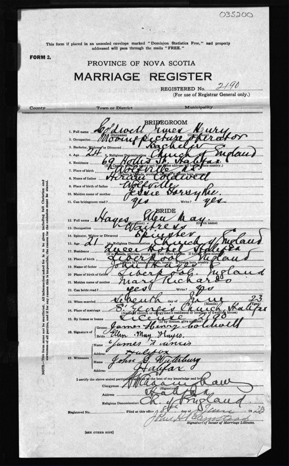 Registration: Year: 1923 number: 35200
