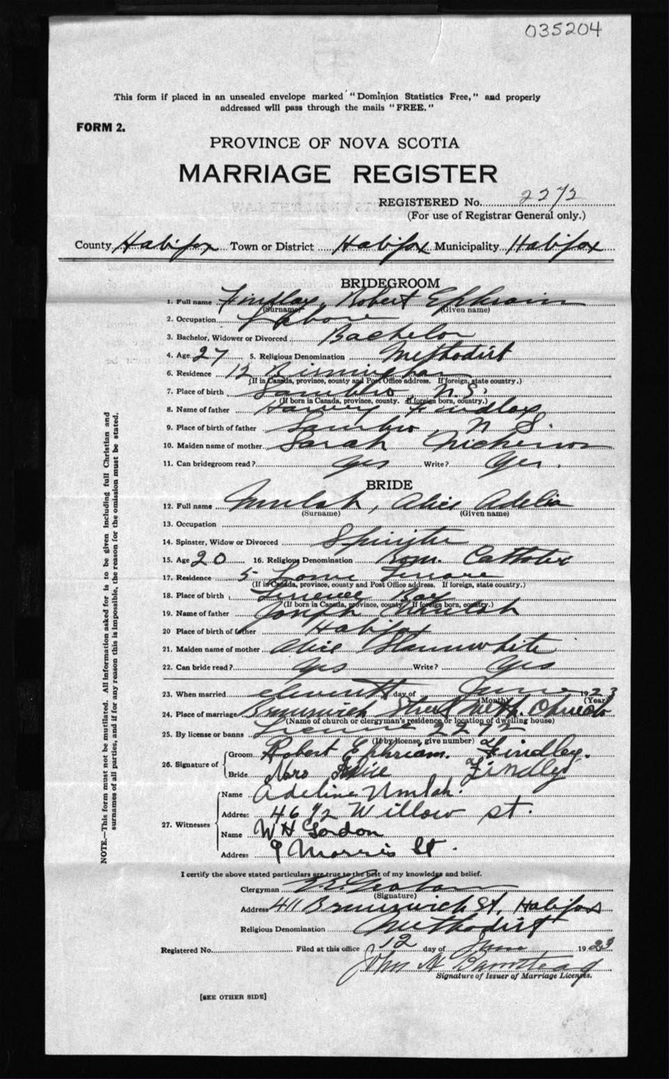 Registration: Year: 1923 number: 35204